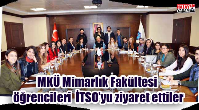 Hatay Mustafa Kemal Üniversitesi (MKÜ) Mimarlık Mühendislik Fakültesi 3. Sınıf öğrencileri İTSO’yu ziyaret ettiler. İskenderun Teknik Üniversitesi sahasına yapılması planlanan Kültür ve Kongre Merkezinin tasarım projesi için İskenderun’a gelen Hatay MKÜ Mimarlık bölümü öğrencileri ziyaret kapsamında, İTSO’yu da ziyaret ettiler. Hatay MKÜ Mimarlık Fakültesi 3. Sınıf öğrencilerinin ziyaretinde İSTE Mimarlık Fakültesi Dekanı Yard.Doç.Dr. Sinem Özyurt Ökten, İSTE Mimarlık Bölümü Araştırma Görevlisi Melis Diker de yer aldı. İTSO Meclis üyesi, Hesap İnceleme Komüsyonu Başkanı aynı zamanda MKÜ Üniversitesinde Mimarlık bölümünde hocalık yapan Müfit Tennioğlu, İTSO Genel sekreteri Figen Gül Dönmez ile birlikte üniversite öğrencilerine İTSO’nun genel yapısı hakkında bilgiler verdiler.