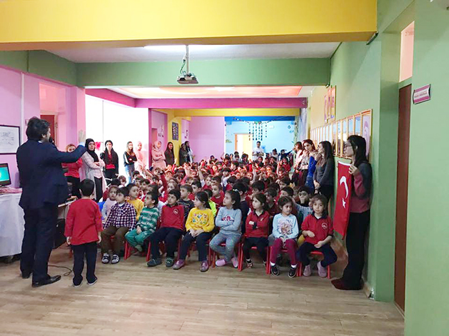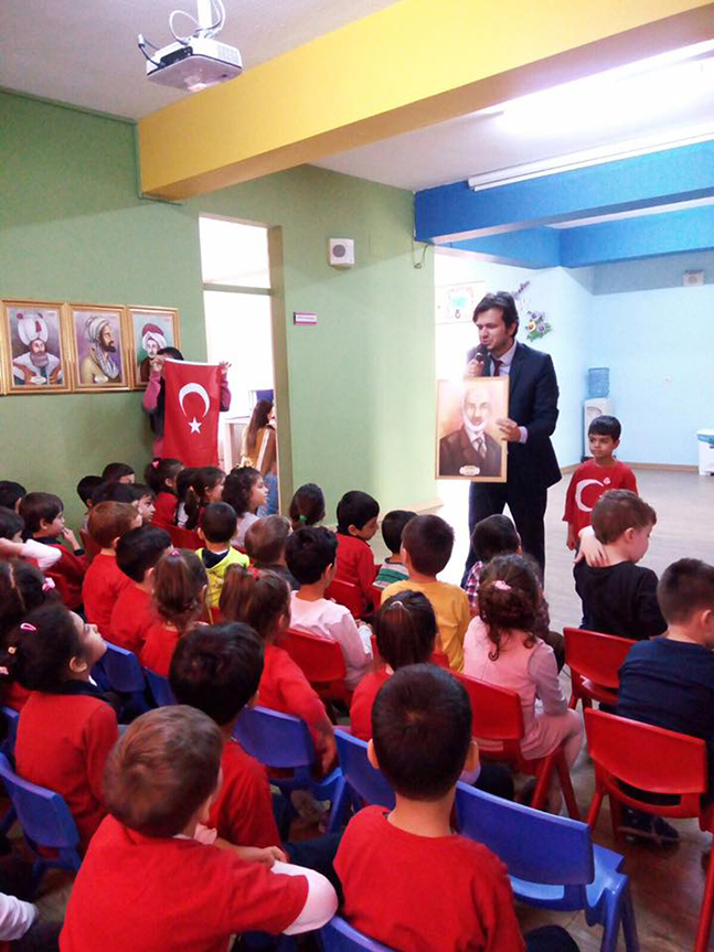 Naciye Suna Oktay Tekin Anaokulu Müdürü Hüseyin Gündüz 12 mart İstiklal marşımızın kabulü ve Mehmet Akif’i anma günü programında çocuklara İstiklal marşımızın nasıl ve hangi şartlarda yazıldığını anlattı. Hep bir ağızdan çocuklarla birlikte istiklal marşının okunduğu programda öğrencilere Türk bayrağı ve Atatürk rozetleri takıldı.
