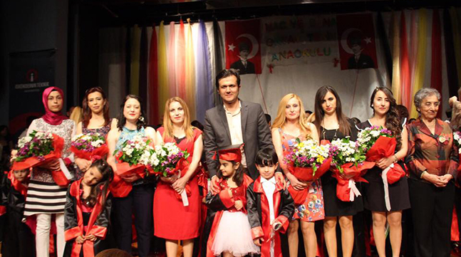 Naciye Suna Oktay Tekin Anaokulu’nda 2016 -2017 eğitim öğretim yılı mezuniyet töreni coşku ile kutlandı. Kutlamalar renkli görüntülere sahne oldu. Naciye Suna Oktay Tekin Anaokulu Müdürü Hüseyin Gündüz, kutlamalarda yaptığı konuşmasında, “Okul Müdürü olarak çok değişik duygular içerisindeyim. Gururluyuz ve onurluyuz. Böyle bir mahşeri kalabalık bir aileye sahip olmaktan mutluydum ve bir yıl emek verdiğimiz yavrularımızdan ayrılacak olmaktan dolayı da üzüntülüyüz. Onların hayatlarında bir pencere açmış, temellerinde bir kaç damla su ve ufuklarında birazcık ışık olmaktan, bu yıl 400 öğrencimizin kalplerine dokunmuş olmaktan dolayı duygularımız tarifsizdi. Vatanına, bayrağına, atasına sahip çıkacak nesiller olacaklar. Türkiye’min 30-40 yılına damga vuracak nesiller, Mustafa Kemal Atatürk’ün ışığında ve onun hedef koyduğu muasır medeniyetlerin üstüne çıkmak için o büyük adımları bu küçük bedenler atacak. Unutulmamalıdır ki dalından düşen yaprağın akibetini rüzgar tayin eder. Bu duygularla miniklerimizi önce Allah’a, sonra anne babalarına emanet ediyor, güzel sağlıklı ömürler diliyorum” dedi. Okul Müdürü Gündüz, emeklerinden dolayı okul öğretmenlerine ve tüm çalışan personellere de teşekkür etti.