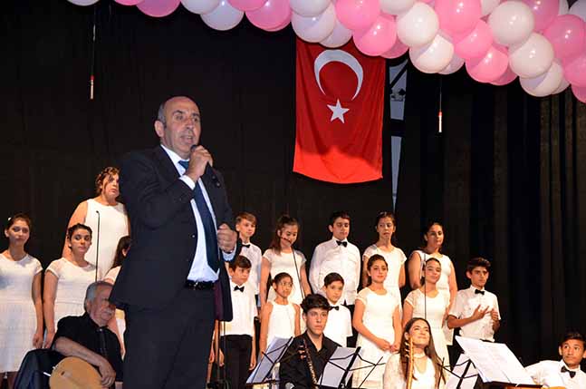 İskenderun Belediye Kültür Sarayında düzenlenen ‘Türkülerimiz Mehmetçiğimize’ konserine veliler ve davetliler yoğun ilgi gösterdi. Nuri Üysen Ortaokulu müdürü Zeyid Doğan, başarılı çalışmalarıyla göz dolduruyor. Eğitim ve öğretimin yanı sıra sosyal faaliyetlere de büyük önem veren Doğan, Her yıl geleneksel hale getirdikleri Türk Halk Müziği konserinde bu yıl Mehmetçikler için özel bir repertuvar hazırladılar. Konser öncesi kürsüye gelen Nuri Üysen Ortaokulu müdürü Zeyid Doğan yaptığı konuşmasında; “Bu yıl 6.sınını düzenlediğimiz Türk Halk Müziği konserlerimizde, öz müziğimizi, kültürümüzü yaşamak ve yaşatmak için çaba sarf ediyoruz. Bu konserlerimizi geleneksel hale getirdik. Bu yıl özel bir repertuar hazırladık. Bildiğiniz gibi ülkemiz bu yıl zor bir süreçten geçti. Afrin’de Kahraman Mehmetçiklerimiz tarih yazdı. Biz de bu yıl konseptimizi Mehmetçiklerimize göre ayarladık ve dedik ki bu sene Türkülerimiz Mehmetçiklerimize gelsin diyerek bu çalışmayı öğretmen ve öğrencilerimizin yoğun gayretleri tamamladık. Türk milleti olarak ordumuzla, askerlerimizle kahraman Mehmetçiklerimizle gurur duyuyoruz. Aramızda gazilerimiz de var. Bu vesileyle Şehitlerimize Allah’tan rahmet dilerken, gazilerimize de sağlık ve afiyetler diliyoruz. Bu arada Şehir dışında olduğu için konserimize katılamayan Değerli abimiz ve hayırseverimiz Nuri Üysen beyefendinin de hepinize ayrı ayrı selamlarını iletiyorum. İyi seyirler” dedi. Yapılan konuşmaların ardından, Mehmetçiklerimiz için özenle seçilen Türküler sazlı ve sözlü olarak koro halinde seslendirildi. Konser aralarında öğrencilerin de okudukları kahramanlık şiirleri ise salonu dolduran davetlilere gurur ve hüznü bir arada yaşattı. Etkinlik kapsamında Nuri Üysen Ortaokulu Müzik Öğretmeni Feryal MİSTİKOĞLU ve diğer öğretmenlerinin birlikte hazırlamış oldukları ‘Bir Başkadır Benim Memleketim’ adlı klip ilk kez davetliler tarafından sine vizyon aracılığı ile izlendi. İskenderun Anıt alanı, İskenderun şehitliği ve çevresinde çekilen görüntüler ve Nuri Üysen Ortaokulu müdürü Zeyid Doğan’ın klip içerisinde okuduğu şiir ise, davetliler tarafından ayakta alkışlandı. Konserin finalinde ise ‘Baş Koymuşum Türkiye’min Yoluna, Irmağına akışına ölürüm Türkiye’m’ adlı Türkü ise öğretmen, öğrenciler ve veliler tempo tutarak hep birlikte ayakta söylediler. Konser sonrasında Koro Ekibine 51. Bakım Merkezi Komutanı Albay Ertan URAL, Deniz Alayı Komutanı Albay İbrahim ÖZDOĞAN ve Eğitim Bir Sen İskenderun Şube Başkanı İbrahim TUNCER tarafından koroda emeği geçenlere çiçek ve plaket takdim edildi.