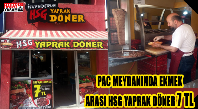 iskenderun Pac meydanında kısa bir süre önce hizmete giren HSG Yaprak Döner Salonu, kısa zamanda ilgi odağı olmayı başardı. Açılış dolayısıyla ekmek arası dana dönerinin 7 TL’ye sunulduğu HSG Yaprak Döner büyük ilgi görüyor. Yüzde yüz dana döneri usta ellerde hazırlanarak vatandaşların damak zevkine sunuluyor. Sipariş için 613 20 01 ve 0 543 861 94 20 numaralarından sipariş verilebileceği öğrenildi.