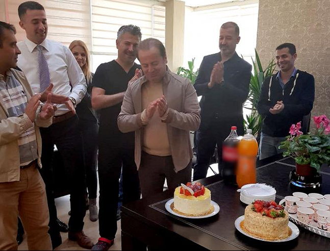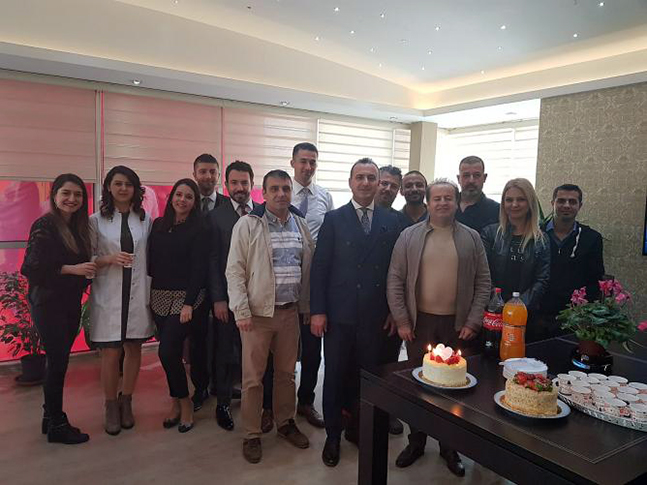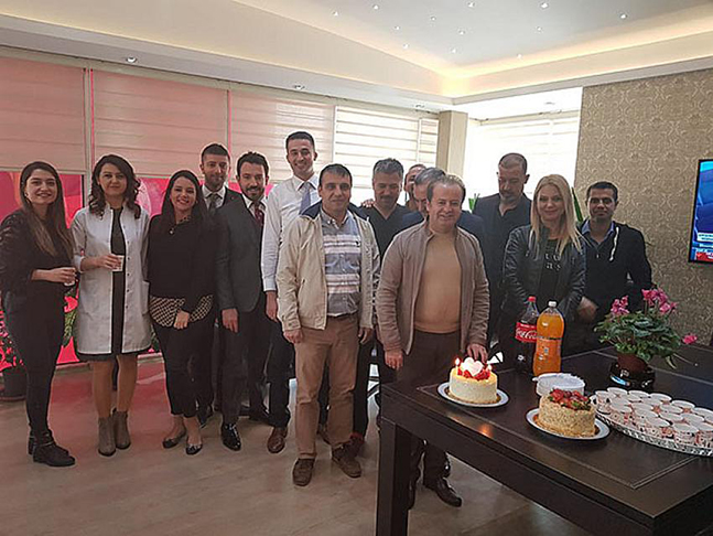 İskenderun’da yaklaşık on yıldır sağlık hizmeti veren Özel Palmiye Hastanesi’nin başarılı ve sevilen Başhekimi Genel Cerrahi Uzmanı Dr. Yılmaz Şahutoğlu’na yönetim ile mesai arkadaşları sürpriz doğum günü partisi düzenledi.İskenderun’da sağlıkçı yönüyle birlikte siyasi kimliğiyle gönülleri fetheden Palmiye Hastanesi Başhekimi Genel Cerrahi Uzmanı Dr. Yılmaz Şahutoğlu 48. Yaş gününü birlikte çalıştığı arkadaşlarıyla kutladı. Öğle saatlerinde Hastanenin Yönetim Kurulu odasında gerçekleştirilen sürpriz doğum gününde Başhekim Dr. Yılmaz Şahutoğlu ‘Sağlık ve huzurlu yaşam’ dilekleriyle doğum günü pastasının mumunu alkışlar arasında söndürdü. Çalışma arkadaşları daha sonra Başhekim Şahutoğlu’nun 48. Yaş gününü tebrik ederek kutladı.