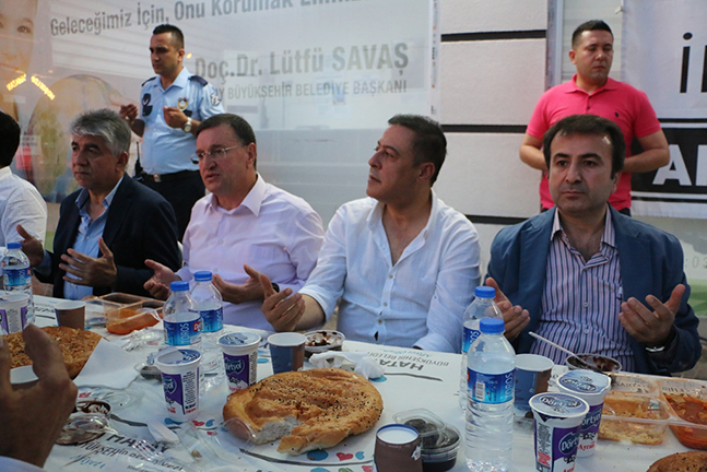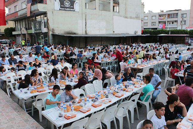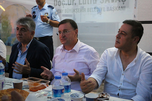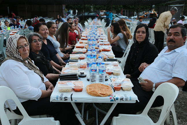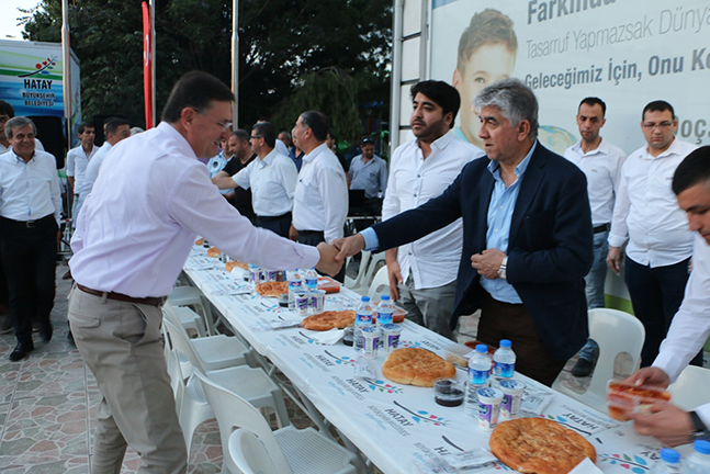 Hatay Büyükşehir Belediyesi, paylaşma kültürünü pekiştirmek ve Ramazan ayının tüm maneviyatını hissedebilmek amacıyla il genelinde kardeşlik sofralarını Hatay halkıyla buluşturmaya devam ediyor. Hatay Büyükşehir Belediyesi, Hatay’ın 15 ilçesinde açtığı kardeşlik sofrasının yeni adresi Payas oldu. Payas ilçesi HATSU Hizmet Binası önünde açılan iftar çadırına Hatay Büyükşehir Belediye Başkanı Doç. Dr. Lütfü Savaş, CHP Hatay Milletvekili Mevlüt Dudu, HBB Kültür ve Sosyal İşler Dairesi Başkanı Gökhan Yıldırım, HBB Muhtarlar Dairesi Başkanı Durmuş Yıldırım, Payas Organize Sanayi Bölgesi (OSB)Başkanı Yunus Kendir, CHP İlçe Yönetimi ve Payaslılar katıldı. Barış, kardeşlik ve toplumsal huzur için Ramazan ayının coşkusunu ve sevincini paylaşmak amacıyla kurulan kardeşlik sofrasında Payaslılar orucunu dualar eşliğinde açtı. Birlik ve beraberliğin pekiştiği iftar yemeğinde vatandaşlara çorba, türlü, pilav, tatlı ve hurma ikram edildi.