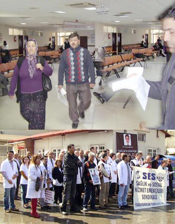 Dr. Ersin Arslan’ın Gaziantep’te bir hasta yakını tarafından bıçaklanarak ölümünün yıldönümünde İskenderun’da da çok sayıda sendikanın destek verdiği bir günlük iş bırakma eylemi etkili oldu. İskenderun Devlet Hastanesi Bahçesinde gerçekleştirilen Basın açıklaması ile sağlıkçılara uygulanan şiddete bir kez daha dikkat çekildi. SES (Sağlık Emekçileri Sendikası) adına açıklamayı okuyan Fesih Güzel, Dr. Ersin Arslan Gaziantep’te bir hasta yakını tarafından bıçaklanarak katledildiğini hatırlatarak “Aradan bir yıl geçti, ancak sağlık çalışanları her gün ülkenin dört bir yanında şiddet görmeye devam ediyor” dedi. Fesih Güze, son bir yıl içinde genç bir sağlık emekçisi Dr. Melike Erdem’in sisteme isyanını kendi canıyla ödediği vurgulanan açıklamaya şöyle devam etti: “Diyarbakır Dicle Üniversitesi Tıp Fakültesi Hastanesi’nde Yoğun Bakım Hemşiresi Rabia Önal öldüresiye dövüldü. Kaymakamın dövdüğü doktor, Hastane Müdürü’nün kovaladığı sağlık çalışanı, Emniyet güçleri ve Başhekimlerin saldırısı, Hasta ve Hasta yakınlarının yerlerde tekmelediği hamile doktor… Bunlar bildiklerimizden sadece bir kaçı Ya bilmediklerimiz ve ya açıklanamayanlar?