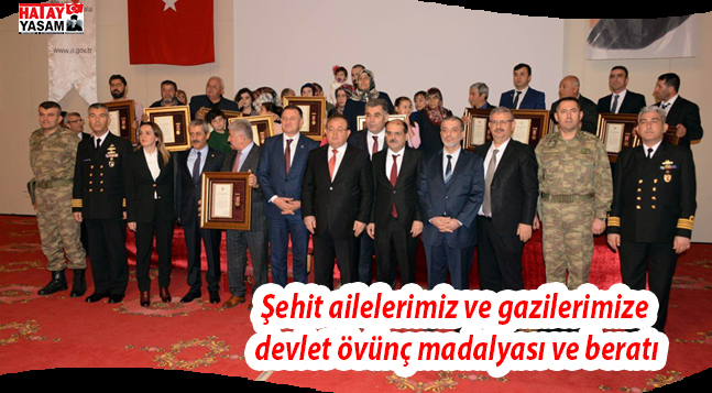 Antakya Ottoman Palace Otel’de şehit ailelerimiz ile gazilerimize devlet övünç madalyası ve beratı takdim edildi. “Devlet Ödünç Madalyası ve Beratı Tevcih Töreni”nde şehit ve gazilerin özgeçmişleri ile Bakanlar Kurulu kararı okundu. Hatay Valisi Erdal Ata’nın Bakanlar Kurulu toplantısı sebebiyle katılamadığı törene yerine vekaleten Vali Yardımcısı Orhan Mardinli törende yaptığı konuşmada, gözlerini kırpmadan ülke için canlarını feda eden şehitlerin aileleri ve gazilerle bir arada bulunmaktan duyduğu memnuniyeti dile getirdi. Vali Yardımcısı Orhan Mardinli, toprak, vatanın bölünmez bütünlüğü, milletin birlik ve beraberliği, toplumun huzur ve güvenliği için en değerli varlıkları olan canlarını feda ederek şehadet mertebesine ulaşan şehitlerin yakınlarına ve gazilere Bakanlar Kurulu kararı, Cumhurbaşkanımız Sayın Recep Tayyip Erdoğan’ın oluruyla devlet övünç madalyası ve beratı verildiğini hatırlatıp, gösterdikleri sorumluluk ve görev anlayışı içinde fedakarlık, başarı ve yararlılık dolu çalışmalarıyla şehit ve malul olan Türk Silahlı Kuvvetleri, Jandarma Genel Komutanlığı, Emniyet Genel Müdürlüğü mensubu şehit ailesi ile gazi yakınlarına madalyayı takdim edeceklerini söyledi. Törende duygusal anların yaşandığı törende bulunan tüm protokol, Şehit ve Gazi aileleri ile yakından ilgilenip, ardından Şehit ve Gazi Aileleri onurlarına verilen yemekte sohbet ettiler.
