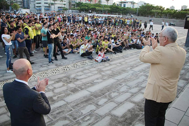 İskenderun Belediye Başkanı Fatih Tosyalı’nın talimatı ile anıt alanına kurulan dev ekranda sporseverler, Final Four’a yükselmeyi başaran takımlarımız Fenerbahçe ve Anadolu Efes maçını ,ertesi gün CSKA Moskova ve Anadolu Efes maçını son olarak Süper Lig’in 33. haftasında oynanacak Galatasaray-Medipol Başakşehir maçını heyecanla izlediler. Belediye Başkanı Fatih Tosyalı sporseverlerden gelen taleplerini geri çevirmeyerek anıt alanına kurdurduğu dev ekranda sporseverlere maç heyecanını canlı yaşattı. Basketbolda EuroLeague 2018-19 sezonunda Final Four’a yükselmeyi başaran takımlarımız Fenerbahçe Beko ve Anadolu Efes’in yarı finalde karşı karşıya geldiği maçta; sevinen taraf Anadolu Efes oldu. Anadolu Efes, Fenerbahçe Beko’yu 92-73 mağlup ederek tarihinde ilk kez EuroLeague Finali’ne yükselmeyi başardı. Nefeslerin tutulduğu karşılaşmayı dev ekranda birlikte izleyen gençler taleplerinin dikkate alınmasından ötürü çok mutlu olduklarını dile getirerek Başkan Tosyalı’ya teşekkürlerini ilettiler.