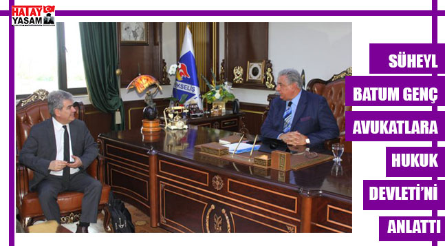 24. Dönem Eskişehir milletvekili ve Anayasa Hukukçusu Prof. Dr. Süheyl Batum, Hatay Barosu Genç Avukatlar Komisyonu avukatları tarafından düzenlenen “Anayasal İlkeler Işığında Hukuk Devleti” konulu konferansa katıldı. Hatay Baro Başkanı Av. Ekrem Dönmez, Hatay Baro Başkan Yardımcısı ve İskenderun Temsilcisi Avukat Sevinç Çakıcı ve baro temsilcilerinin de katıldığı konferansa Yükseliş Koleji Bilim Kampüsü konferans salonu ev sahipliği yaptı. Yükseliş Koleji Bilim Kampüsü kurucusu eğitimci iş adamı Nuri Üysen, konferans öncesi Batum’u makam odasında ağırlayarak bir süre sohbet etti. Haber merkezimize kısa bir açıklama yapan Anayasa Hukukçusu Prof. Dr. Süheyl Batum ev sahipliği için Üysen’e teşekkür ederken genç avukatlara ve avukat adaylarına bilgi ve tecrübelerini aktarmaya çalışacağını söyledi. Batum açıklamasında: ‘Ben baroya ve genç avukatlar komisyonuna çok teşekkür ediyorum davetlerinden dolayı. Bugün hukuk devletini konuşmak için onların çok sık yaptığı eğitim çalışmalarından bir tanesinde yer almak için gelmiş bulunuyorum. Bu arada hem baroya hem de bu güzel eğitim mekânını açtıkları içinde Yükseliş Kolejine ve sayın kurucusu Nuri Üysen beye çok teşekkür ediyorum. Harika bir yeri de bu vesileyle görmüş olduk. Türkiye de eğitim çok önemli o bakımdan hem böyle güzel bir eğitim kurumunda hem de böyle önemli bir eğitim çalışmasında yer almaktan çok mutluyum. Hepimiz umutluyuz. Baharın geldiğine gerçekten inanıyoruz. Bunun sürekli olacağını da umuyorum” dedi. Açıklama sonrasında 23. Dönem Cumhuriyet Halk Partisi Hatay Milletvekili A.Aziz Yazar ile de karşılaşan Batum kısa süre sohbet ederek hasret giderdiler. Batum ayrıca Yükseliş Koleji Kütüphanesine ‘Nutuk’ kitaplarından 200-300 adet de göndereceğini söyledi. Sunuma geçmeden önce Nuri Üysen’in İskenderun Lisesi mezunları için düzenlediği müzik dinletisine de katılan Anayasa Hukukçusu Prof. Dr. Süheyl Batum daha sonra “Anayasal İlkeler Işığında Hukuk Devleti” konulu konferansta genç avukatlara bilgilerini ve tecrübelerini aktardı.