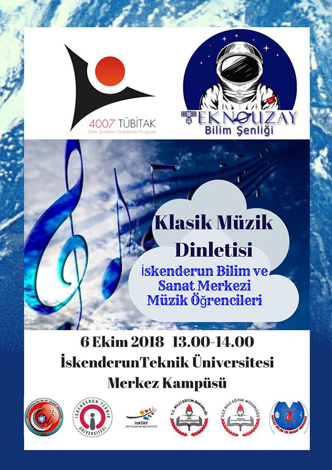 “TÜBİTAK 4007 Bilim Şenlikleri Programı” kapsamında desteklenen ‘TeknoUzay Bilim Şenliği” İskenderun Teknik Üniversitesi (İSTE) Merkez Kampüs’te 5-6 Ekim 2018 tarihleri arasında gerçekleştirilecek