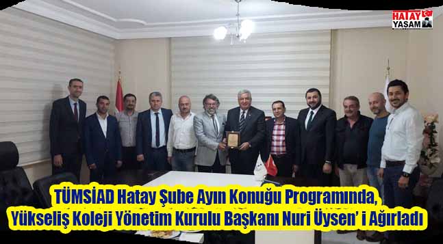 Tümsiad Hatay Şube Başkanı Doğan Gülsüren Ayın Konuğu Programımıza Hatay’ın değerlerinden aynı zamanda TÜMSİAD Hatay şube üyemiz Sn. Nuri Üysen ile başladık, Başkan Gülsüren, Sn. Nuri Üysen’ in Deneyim, Tecrübe ve tavsiyelerinden istifade etmek istiyoruz dedi. Yükseliş Koleji Yönetim Kurulu Başkanı Sn. Nuri Üysen, Hatay’da Ortaklık kültürünün gelişmesi gerektiğini bunun için Bu tür buluşmaların çok önemli olduğunu konuşarak istişarelerle güzel fikirlerin bu meclislerden çıktığını belirtti. Tümsiad Hatay Şubesinin Sivil Toplum Kuruluşu olarak önemli işler yaptığını ve bu ailenin parçası olmaktan mutluluk duyduğunu ifade etti. Tümsiad Hatay Şube Başkanı Doğan Gülsüren Ayın Konuğu Programına Katılımlarından dolayı Sn. Nuri Üysen’ e Plaket takdim etti.