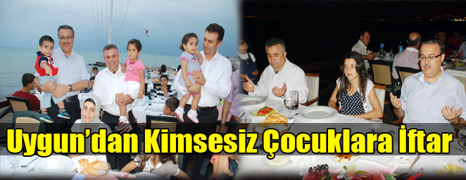 Antakya ve İskenderun’da bulunan yetiştirme yurtlarından getirilen yaklaşık 60 kimsesiz çocuk için İskenderun Yelken kulübünde Sabahattin Uygun tarafından düzenlenen iftar yemeğine İskenderun Kaymakamı Ali İhsan Su, İskenderun ilçe Emniyet Müdürü Cengiz Başar, İskenderun İlçe Müftüsü Hamdi Kavillioğlu, Kuyumcular Odası başkanı Uğur Fırat ve SHÇEK yöneticileri katıldı.