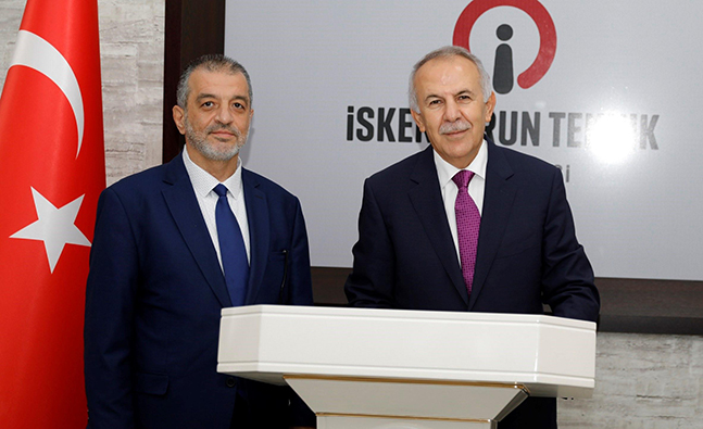 Cumhurbaşkanlığı 2018/202 sayılı atama kararı ile Mülkiye Başmüfettişi olarak atanan Hatay Valisi Sayın Erdal Ata, İskenderun Teknik Üniversitesi Rektörü Prof. Dr. Türkay Dereli’yi ziyaret etti. 19 Eylül 2016 tarihinden itibaren 2 yıldır yürüttüğü Hatay Valiliği görevinde iken; 26 Ekim 2018 tarih ve 2018/202 sayılı Cumhurbaşkanlığı Kararnamesi ile Mülkiye Başmüfettişi olarak atanan Hatay Valisi Erdal Ata, İskenderun Teknik Üniversitesi (İSTE) Rektörü Prof. Dr. Türkay Dereli’ye veda ziyaretinde bulundu. Vali Erdal Ata, üniversitelerin gençlerimiz için akademik anlamda büyük bir yol gösterici olduğu için ayrı bir öneme sahip olduğunu ve bu konuda yapılan emek ve çabaların kendisi için çok değerli olduğunu dile getirdi. Prof. Dr. Dereli ise Vali Ata’yı tanımaktan ve kendileriyle birlikte çalışmaktan onur duyduklarını belirterek, bir eğitim gönüllüsü olarak şehrimize verdiği tüm hizmetler, İSTE’ye olan destekleri ve nazik ziyaretlerinden dolayı kendisine teşekkür etti. Ziyaretin sonunda, İSTE Şeref Defterini imzalayan Vali Erdal Ata’ya, İSTE Rektörü Prof. Dr. Türkay Dereli tarafından İskenderun Meslek Yüksekokulu Güzel Sanatlar Bölümü öğretim elemanlarınca yapılan tablo takdim edildi.