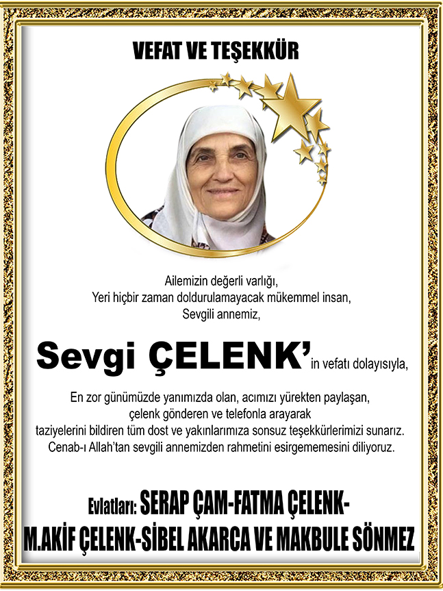 Sevgi ÇELENK’in vefatı dolayısıyla,