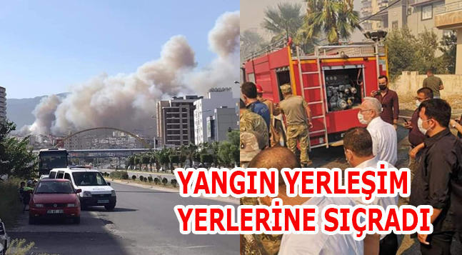 Hatay’ın İskenderun ilçesi Sarımazı TOKİ civarı- Nardüzü sırtlarında başlayan yangın, rüzgarın etkisiyle yerleşim alanlarını tehdit ediyor. İSSUME’de ormanlık alana bakan evler yandı.