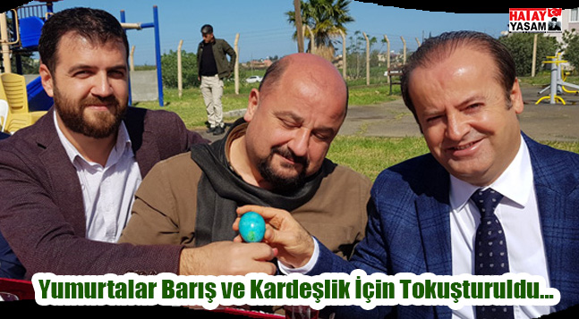 Arsuz ilçesi Akçalı Mahallesi’nde düzenlenen Yumurta Bayramı’nda barış ve kardeşlik için dualar edildi. Baharın gelişi ve doğanın canlanması ile birlikte Türkiye’de ve Dünya’da barış ve kardeşlik temennileriyle yumurtaların tokuşturulması sırasında renkli görüntüler ortaya çıktı. Cumhuriyet Halk Partisi İskenderun Belediye Başkan Aday Adayı Doktor Yılmaz Şahutoğlu, İskenderun Bakkallar ve Bayiler Odası Başkanı Mustafa Çöloğlu, Hatay Büyükşehir Meclis Üyeleri Sezer Aydemir ve Semir Topaloğlu arasında kıyasıya bir yarış yaşandı. Neşeli bir Yumurta Bayramı’nın en önemli seramonilerinden birisi olan yumurta tokuşturma sırasında rakipler birbirlerine üstünlük sağlayamayınca, Doktor Yılmaz Şahutoğlu, Mustafa Çöloğlu, Sezer Aydemir ve Semir Topaloğlu, barış, kardeşlik ve dostluk kazandı diyerek espri yaptılar.